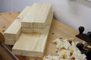 After some deliberation, I decided I needed a saw bench first, in order to get some progress going on the rest of the shop rebuild. So I’m prepping the wood right now. This was originally 2″x12″x8′ material I’d hand selected and then stacked and stickered in the garage over a year ago for building a workbench.  I don’t need that much of it anymore, since I’ve decided to take a different route for building the bench top and legs. In any case, it is pretty darn dry at this point, so I don’t expect a lot of wood movement. Plus, as you can see, I picked my boards with center pith (which I’ve cut around) to give me a lot of quartersawn material.  Smart, eh?