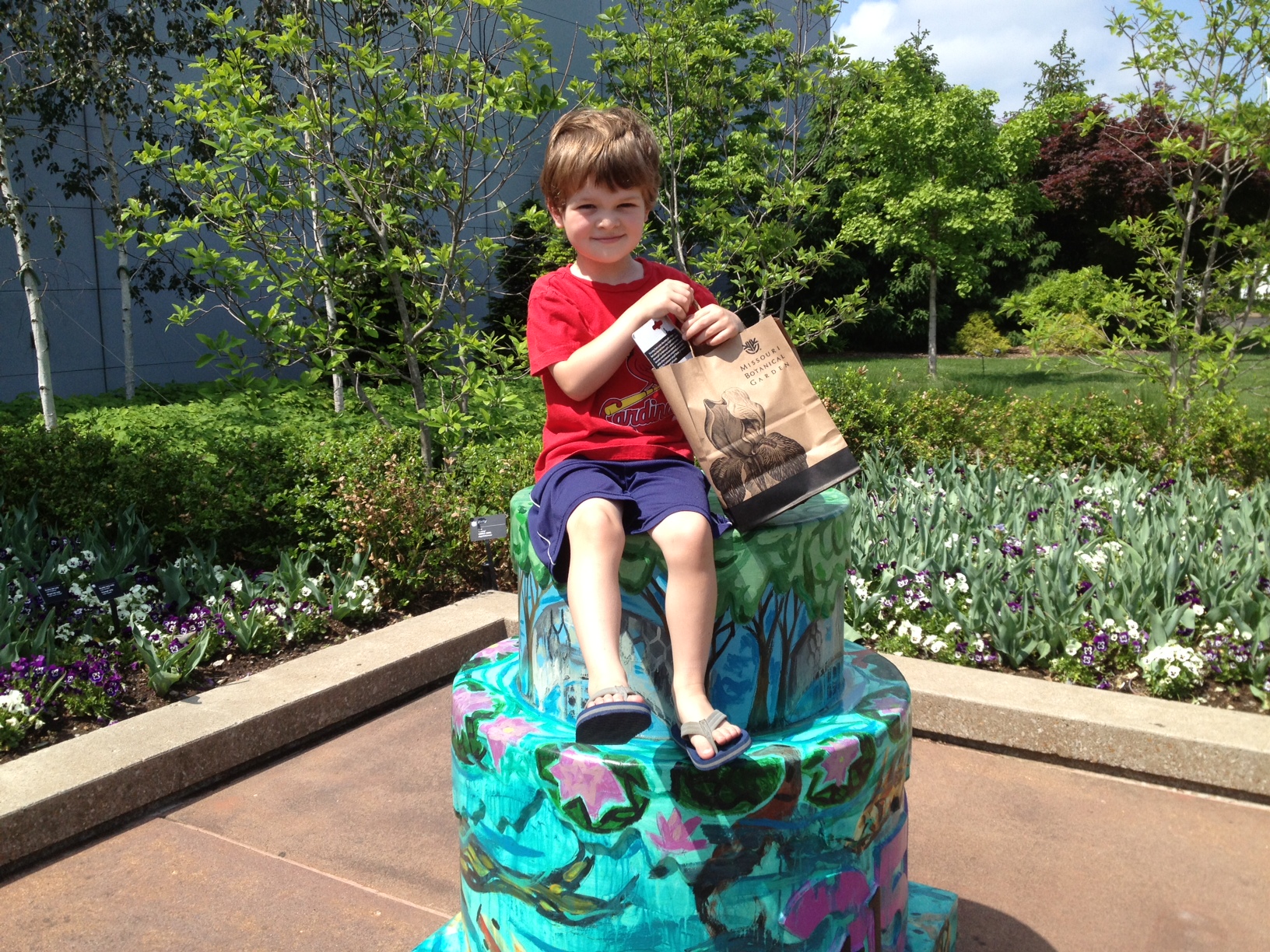 Errr… Sorry about that last picture. Apparently I accidentally deleted the one of the bench top pieces sitting on the new saw horses when I was trying to get a picture of Finley at the Botanical Gardens sitting on a St. Louis city celebratory birthday cake. (Hey, at least it is a picture of something sitting on top of something else!) I’ll take a new picture of the finished saw horses and add it later.