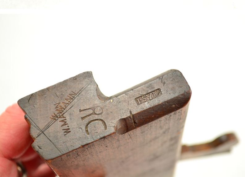 According to Goodman (British Planemakers from 1700, William Louis Goodman), John Sym was a planemaker in London, England, who worked from 1753 through 1803. Wow. This guy made planes for 50 years during a time when the average life expectancy was just 40! Aside from a few hammer dings and two more overlapping stamps on the heel by our friend, Mr. Mann, it is in remarkably sound shape for a tool that is over 200 years old!