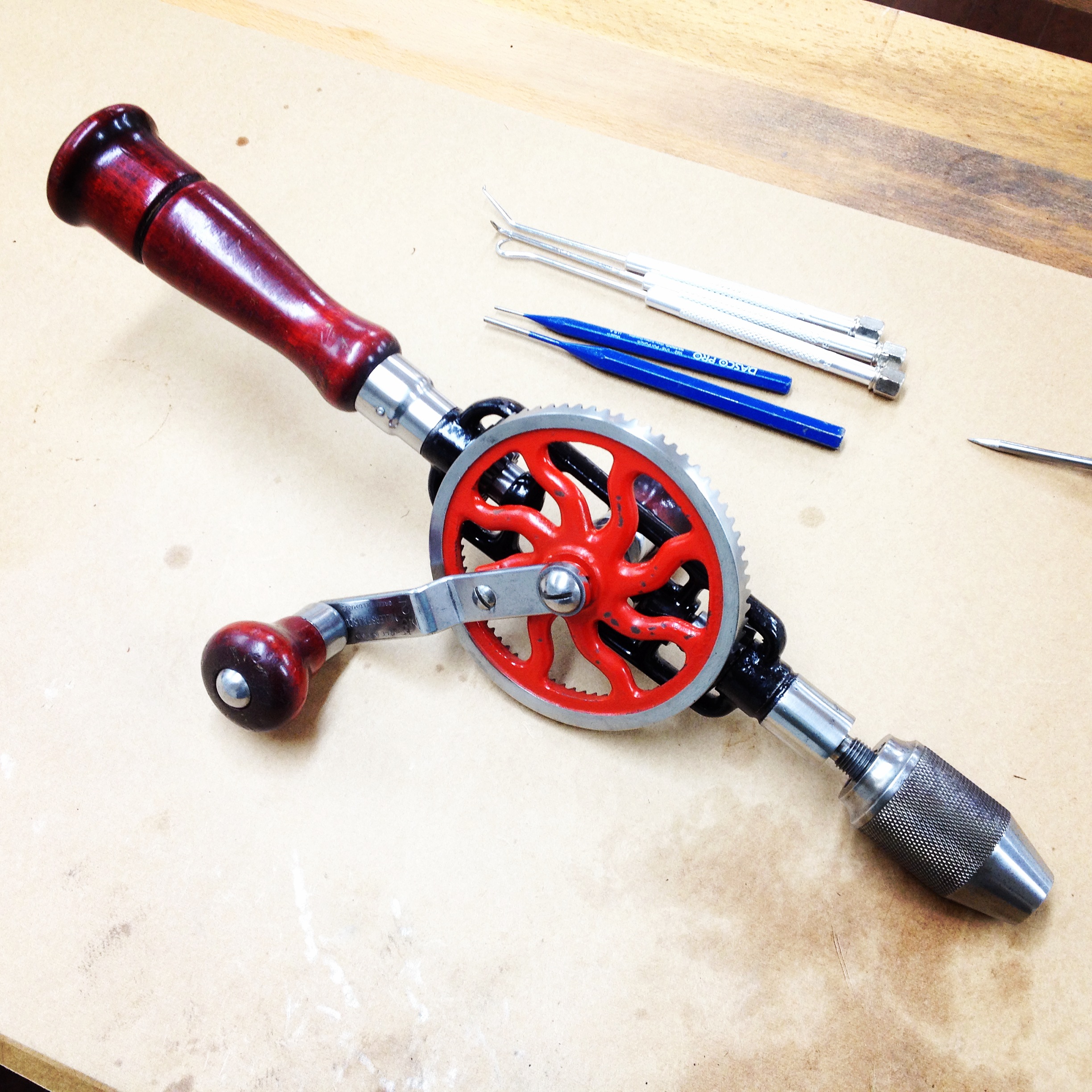 I know it might seem presumptive of me, but as soon as Finley started showing an interest in working down in the shop with me, I quietly began assembling a small set of tools for him. So not all of these hand drills are mine; I’m not a collector! But… believe it or not, I’m having a lot of fun with them. After I’ve practiced on my own, I might consider picking up a few here and there and cleaning them up to sell or give away to friends or family.